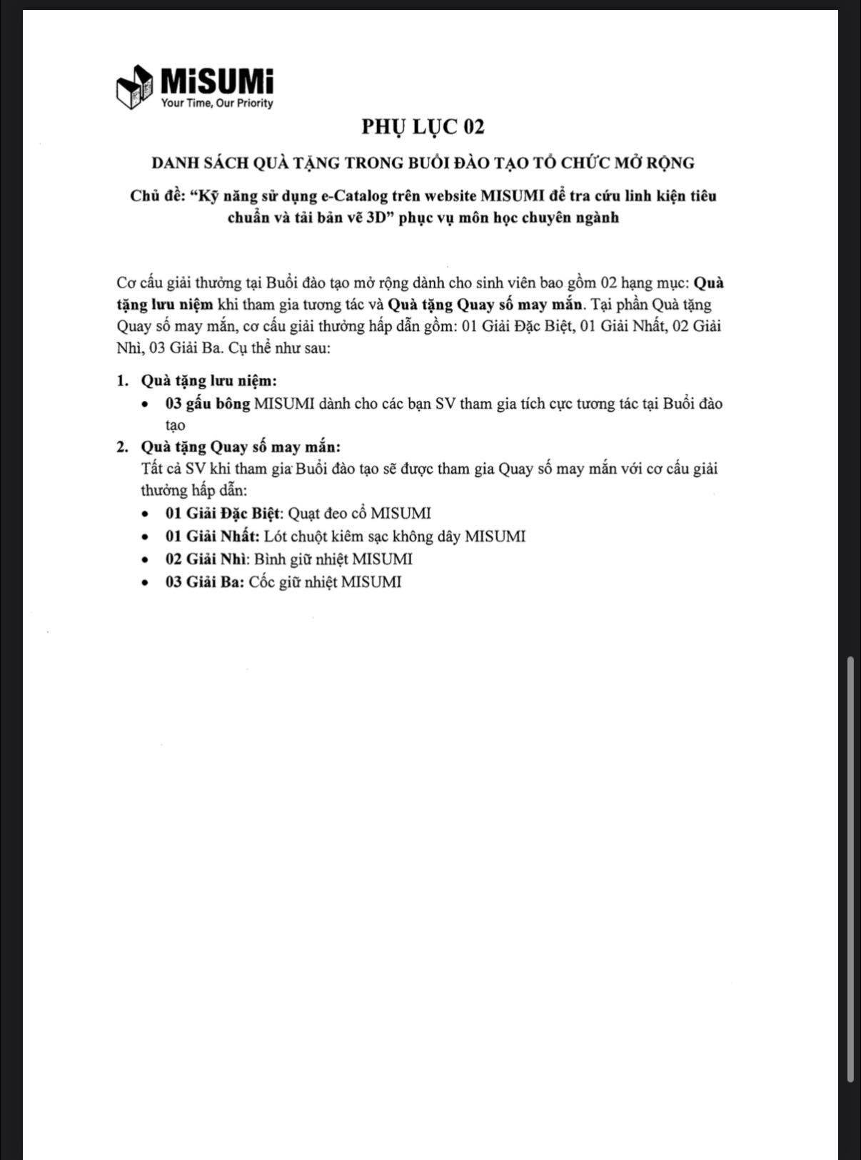 [MISUMI VIỆT NAM] ĐÀO TẠO MỞ RỘNG DÀNH CHO SINH VIÊN KHỐI KỸ THUẬT