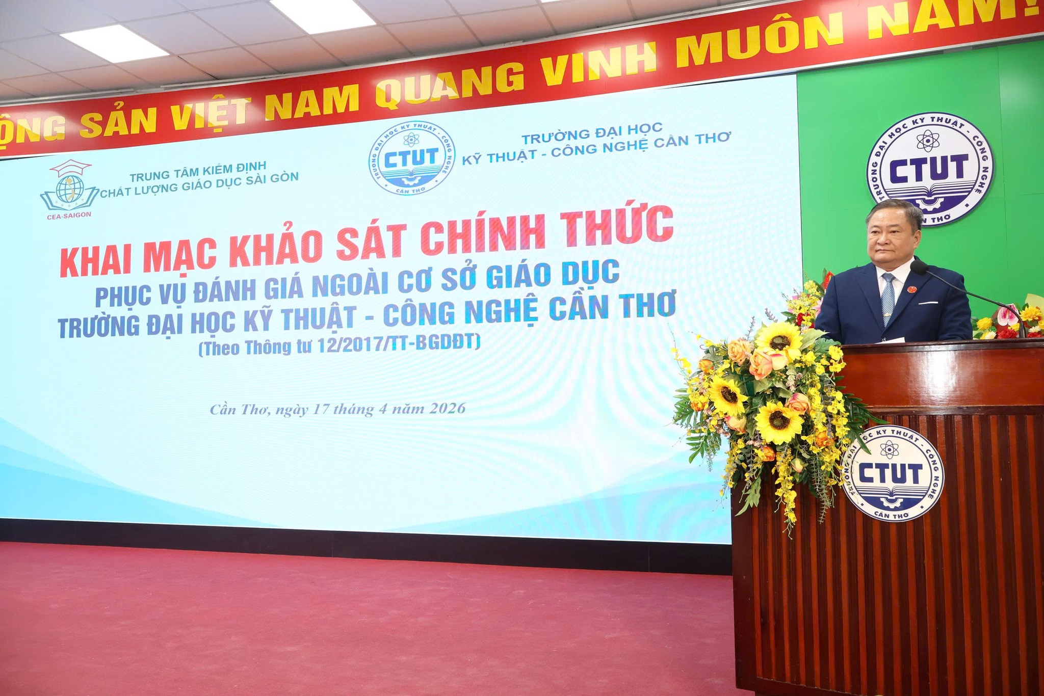 Sáng ngày 17/4/2026, Đoàn Đánh giá ngoài cơ sở giáo dục đại học của Trung tâm Kiểm định Chất lượng Giáo dục Sài Gòn đã long trọng tổ chức Khai mạc Khảo sát chính thức phục vụ Đánh giá ngoài cơ sở giáo dục đối với Trường Đại học Kỹ thuật – Công nghệ Cần Thơ (CTUT).